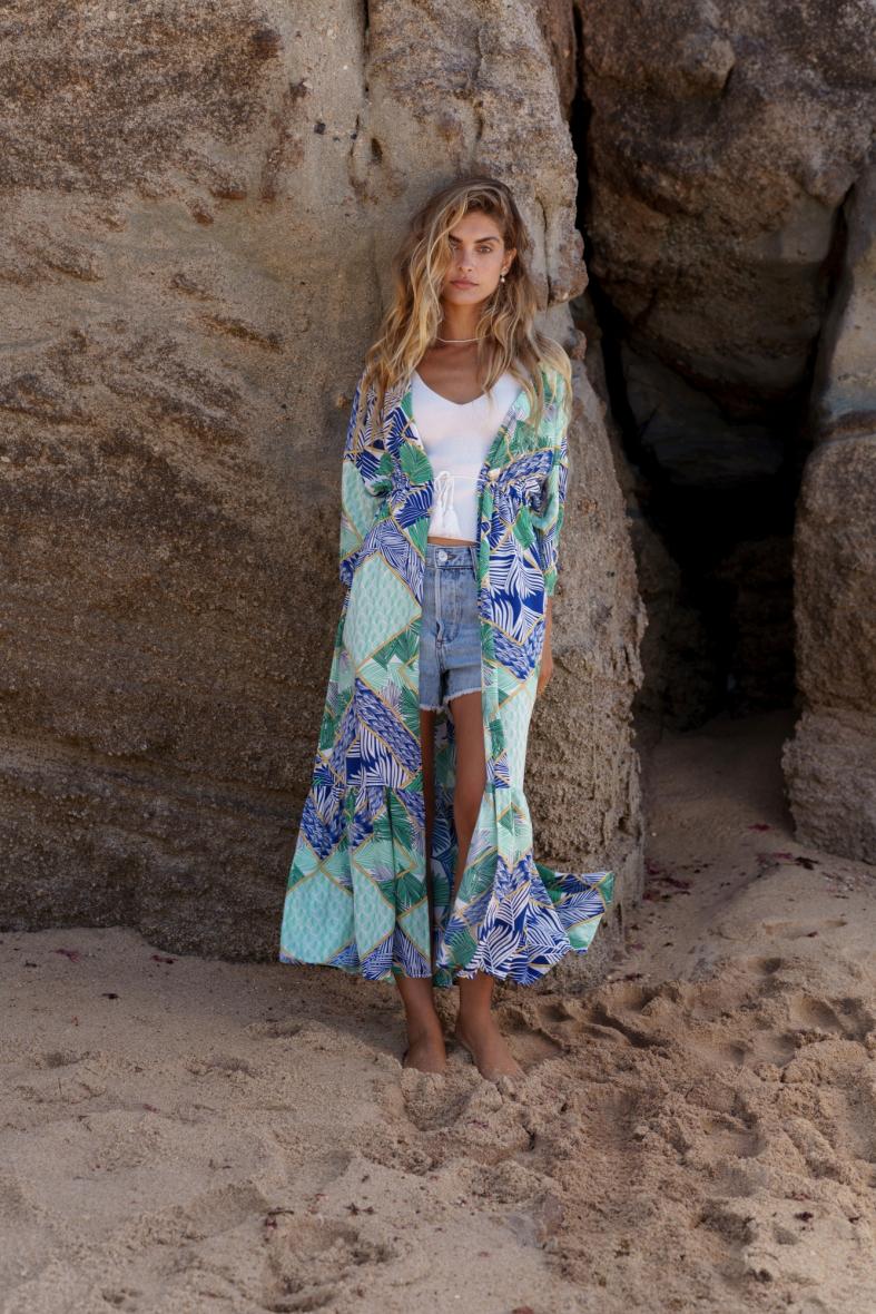 Pasvorm: Kan gedragen worden als lange gilet, over een onderkleedje of als cover up over een badpak/bikini
